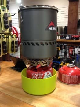Alas there is a simple and elegant solution to this issue. Place the bottom of the canister in a small bowl with a bit of water. When this is done you can hear the stove instantly roar to full capacity. The idea is that the canister cannot freeze unless the water freezes (thermodynamics to the rescue). Therefore the stove runs at full capacity and efficiency regardless of the outside temperature. This also allows every bit of fuel to be drawn from the canister reducing the amount of fuel needed on trips. Just remember to keep cycling the water in the bowl or it will freeze and the whole system breaks down. Try it out on your next outing and you’ll be impressed!