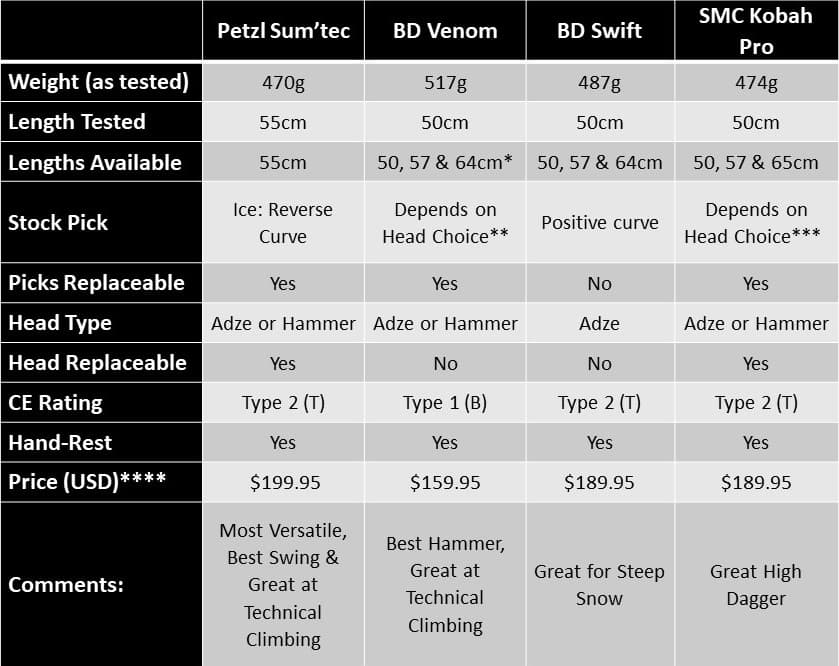 Of course Grivel is conspicuously missing from the review. The reason is they simply don’t offer the type of hybrid tool that we’re reviewing here. The closest is the Air Tech Evo G-Bone but it still doesn’t really match with the other axes so I opted to exclude it.