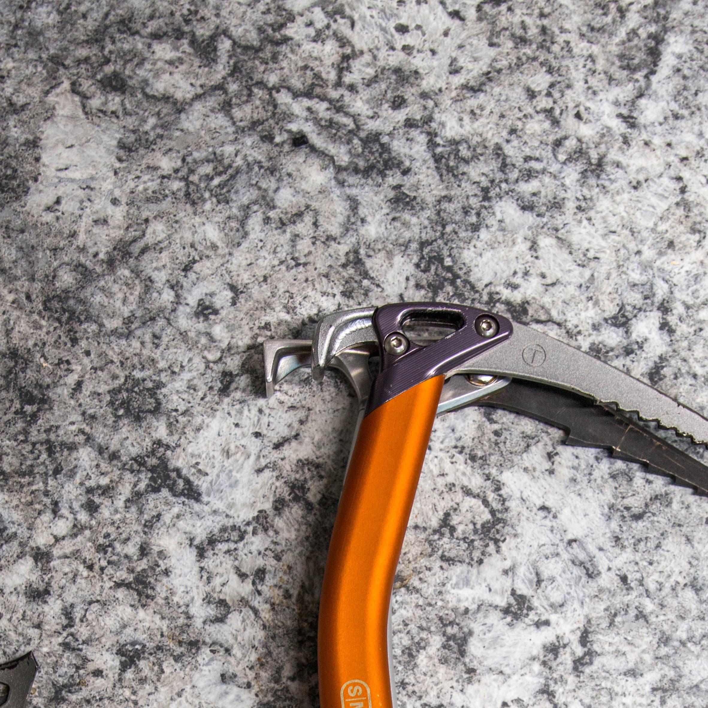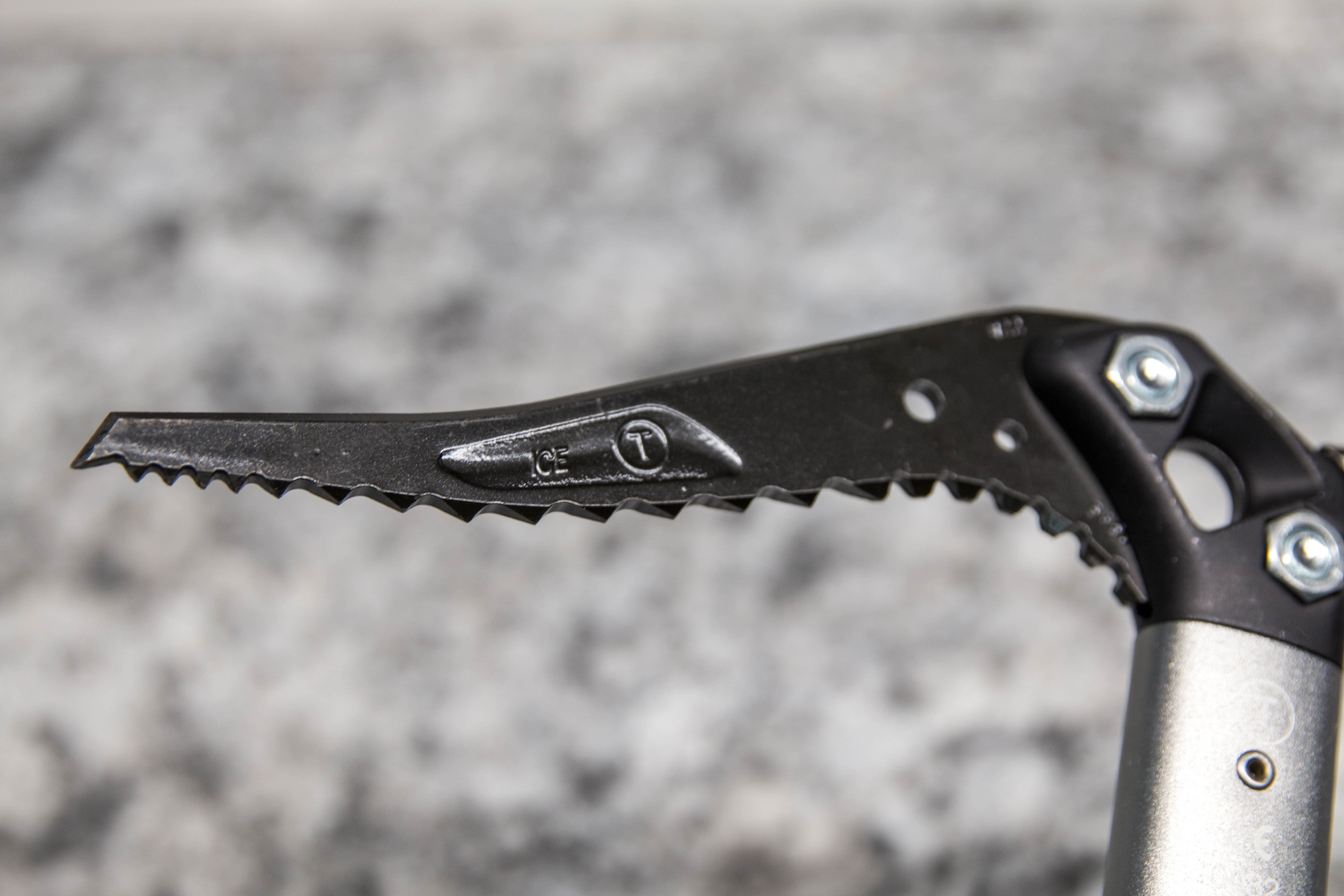The adze and hammer versions of the Venom come with different picks. The Mountain Classic pick for the adze version and the Mountain Tech pick for the hammer version. As the picks are replaceable you can always swap them around of course. Our test axe was the Venom Hammer and so came with the Mountain Tech pick. This B rated pick tapers from 4.5mm to 3.6mm at the tip. A bit on the thicker side so more prone to breaking ice than thinner options but it’s quite durable.