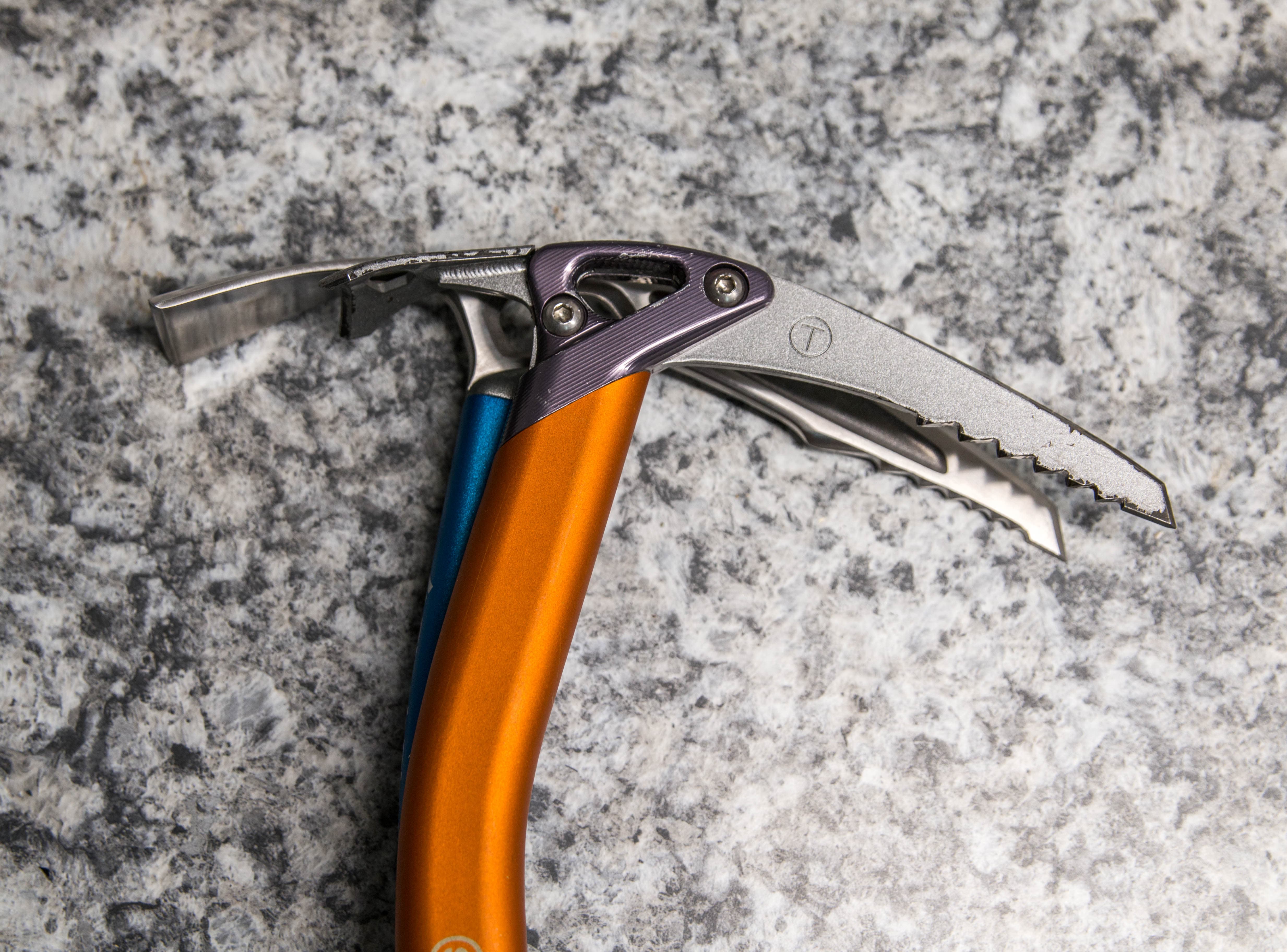 The two pick options are the Glacier Pick with a more traditional, positive curve and the Headwall pick with a more technical reverse curve. Aside from the shape, the picks have different angles with the Headwall pick set more aggressively though the tip of the pick is not very aggressive. Interestingly both the Headwall and Glacier picks are about 2cm shorter than the Sum’tec or Venom picks though they are on par with axes sporting non-replaceable picks like the Black Diamond Swift.