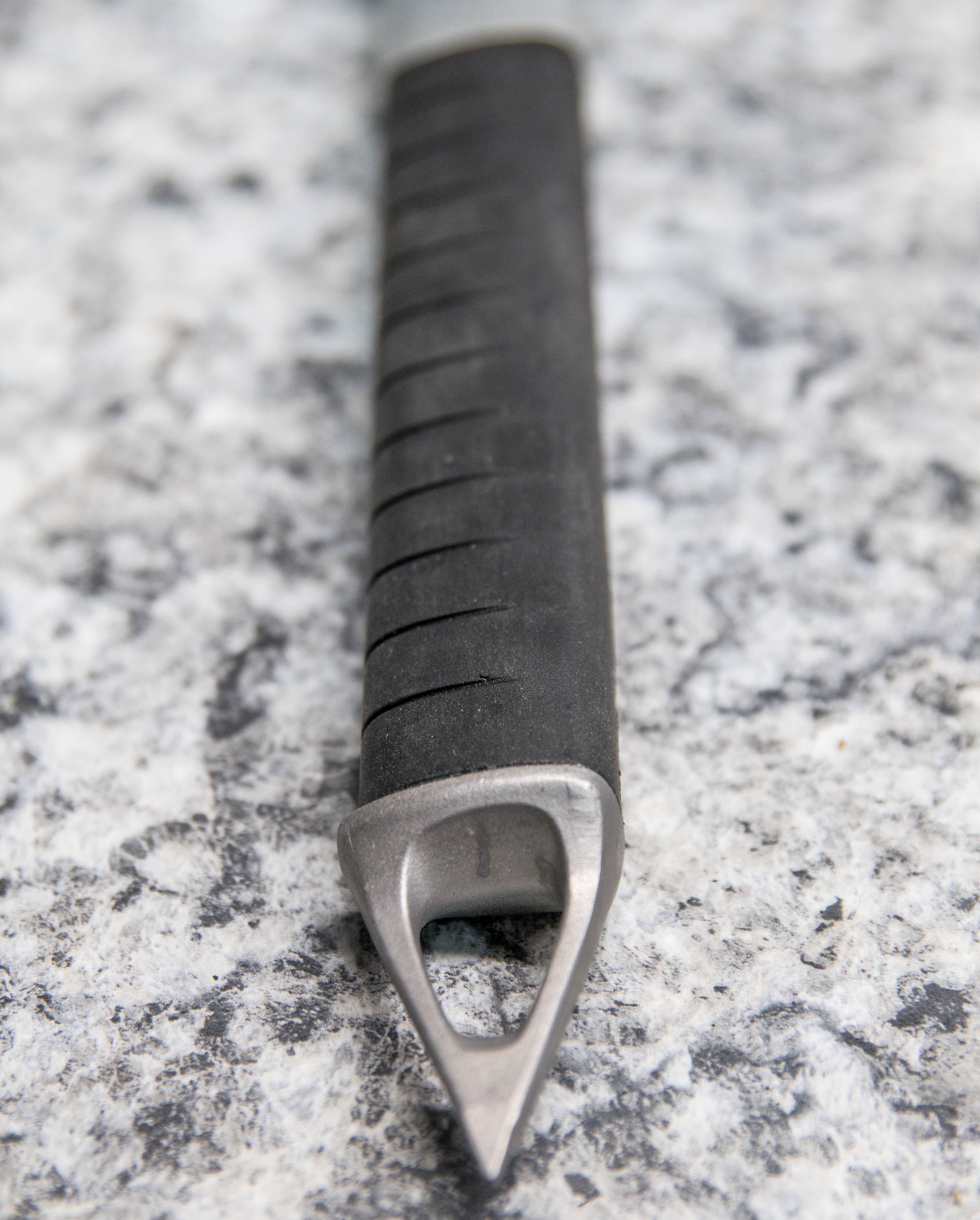 The fairly smooth rubber grip on the bottom of the shaft gives the axe a good, secure feel while insulating my hand from the cold, aluminum shaft. A really nice feature on cold or wet days!