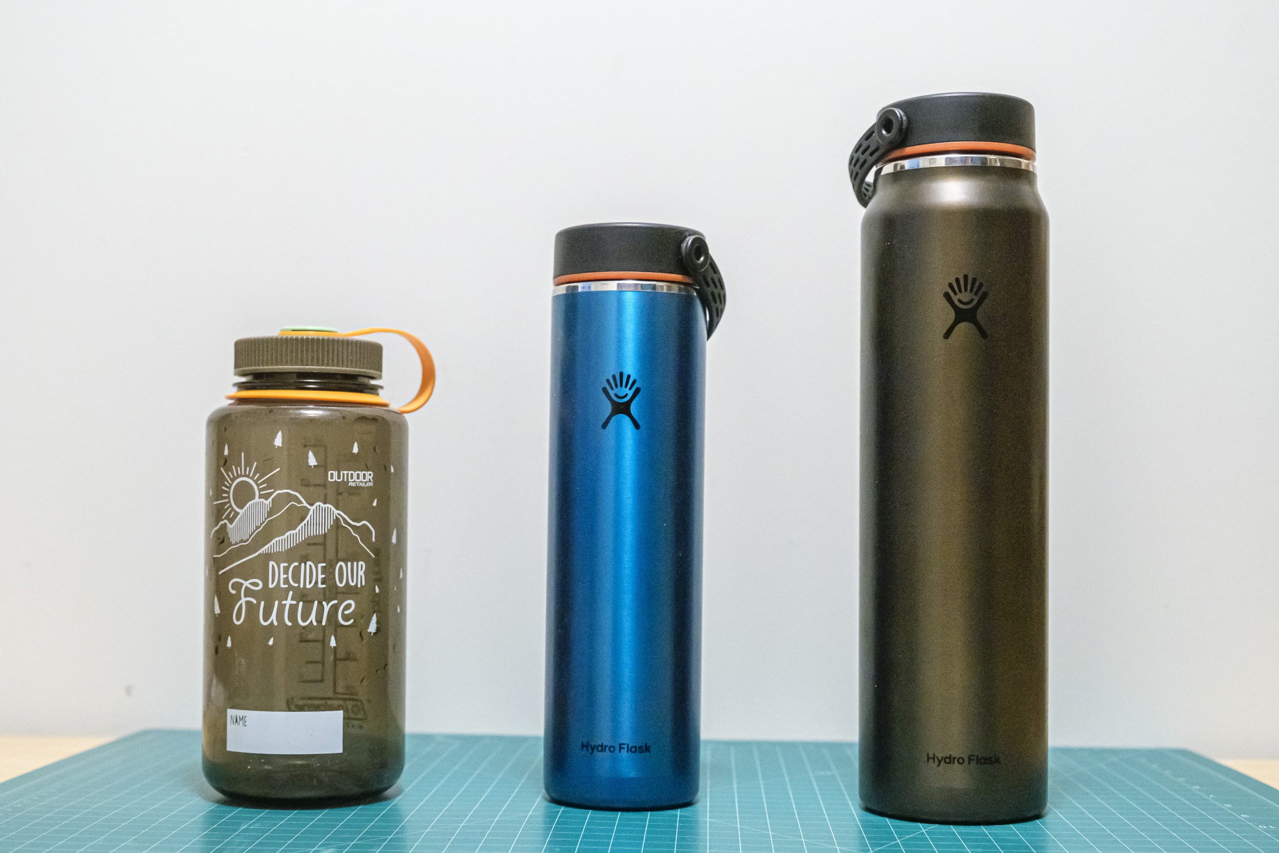 The two Hydro Flask Trail Series bottles we tested were 709ml and 1.18L. They are taller than a standard Nalgene but they are also thinner. I found they slid into a backpack along the backpad easily thanks to their slim profile. This way they were protected from external bumps as well.